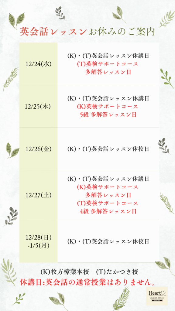 年末年始の休講日のお知らせ🎠