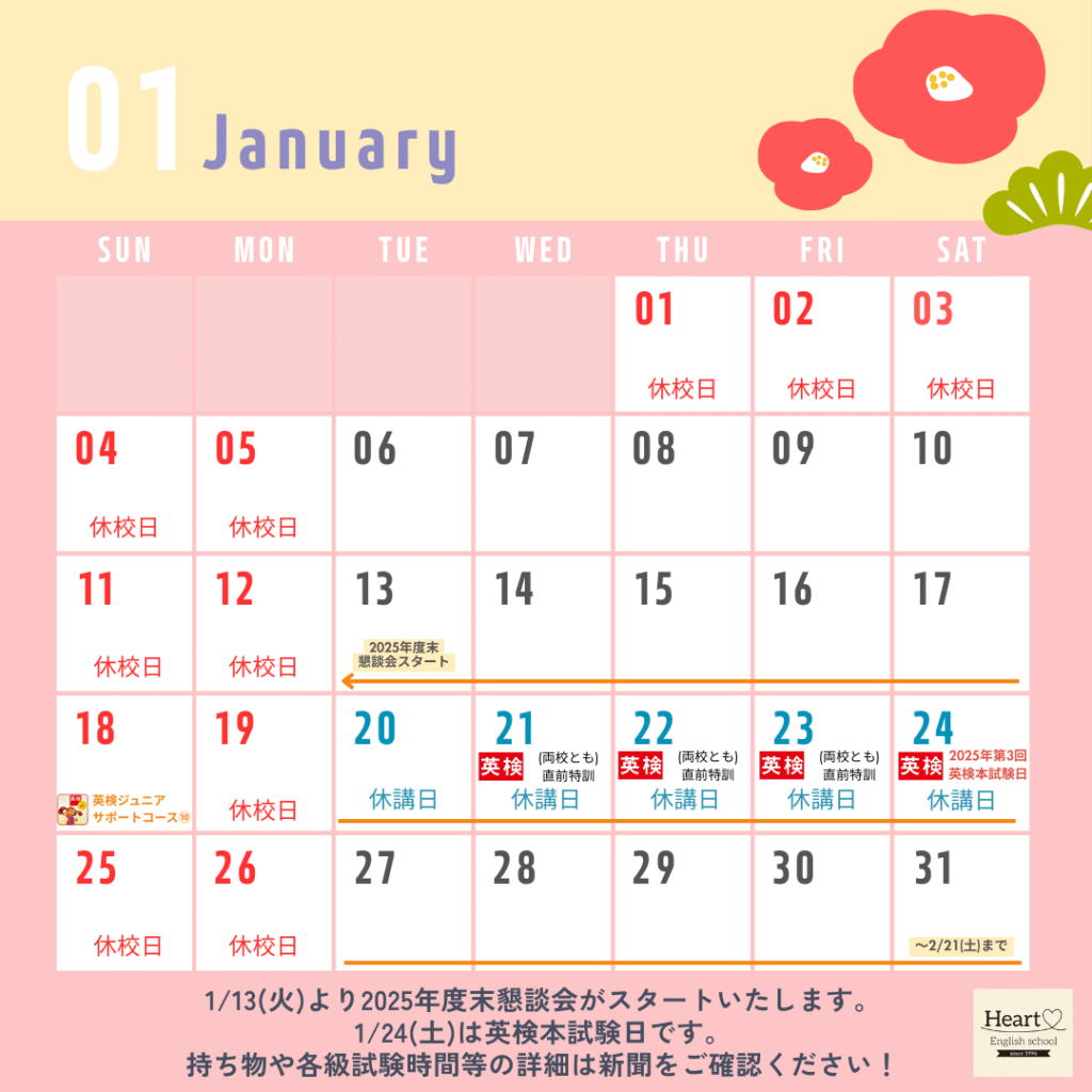 ・1/18(日)は英検ジュニアサポートコースです!