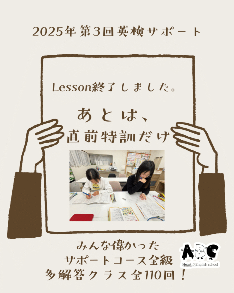 本日英検サポートコース多解答クラス全級、全クラス110回終了!