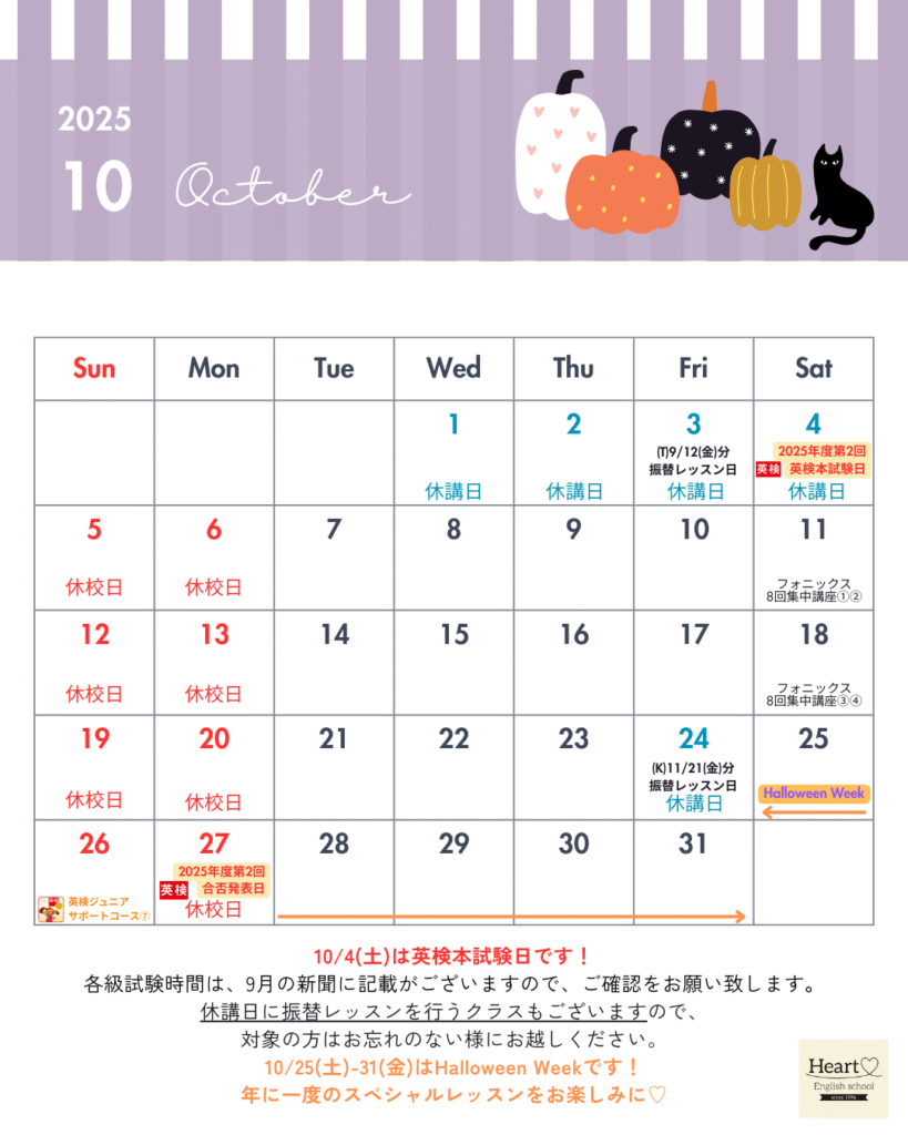・10/26(日)は第7回英検ジュニアサポートコースレッスン日です!
